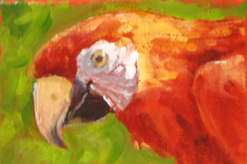 The Red Rooster is the first of new chicken paintings. Though small in size, it is a powerful painting, capable of getting your attention from across the room. Perhaps you can put in on a small table top easel next to your alarm clock.